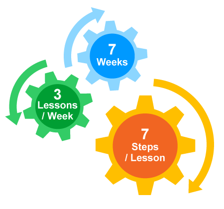 Every week, there are 3 lessons, namely Reading and Writing, Listening, Speaking. Students are advised to go through the 7 steps one by one in every lesson in order to have a progressive learning experience. The learning pattern is also flexible as students can re-visit any steps in a lesson to refresh their memory.